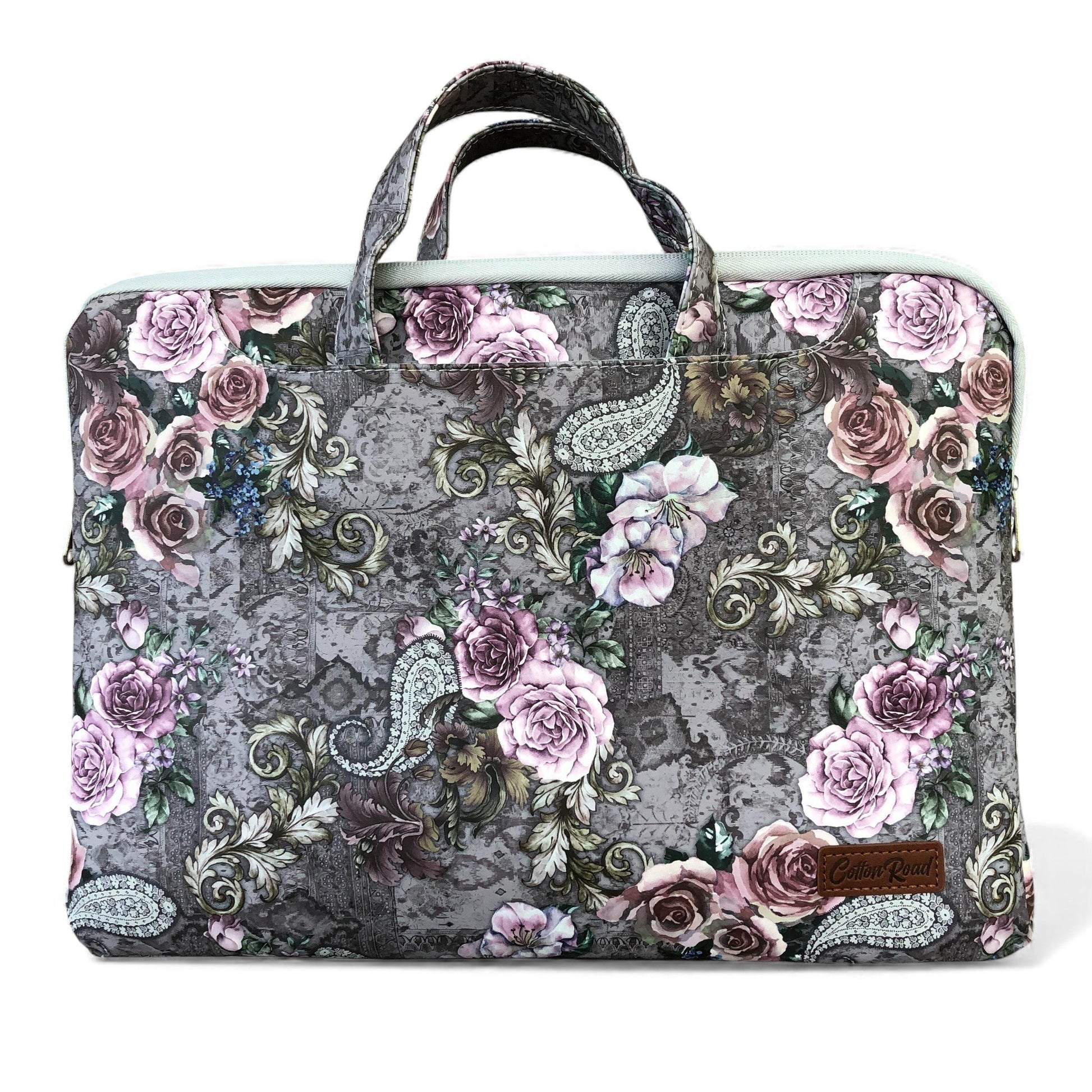 GREY Cotton Road PVC Laptop Bag / Carry Sleeve with Padded Inner and PAISLEY/PINK FLOWERS