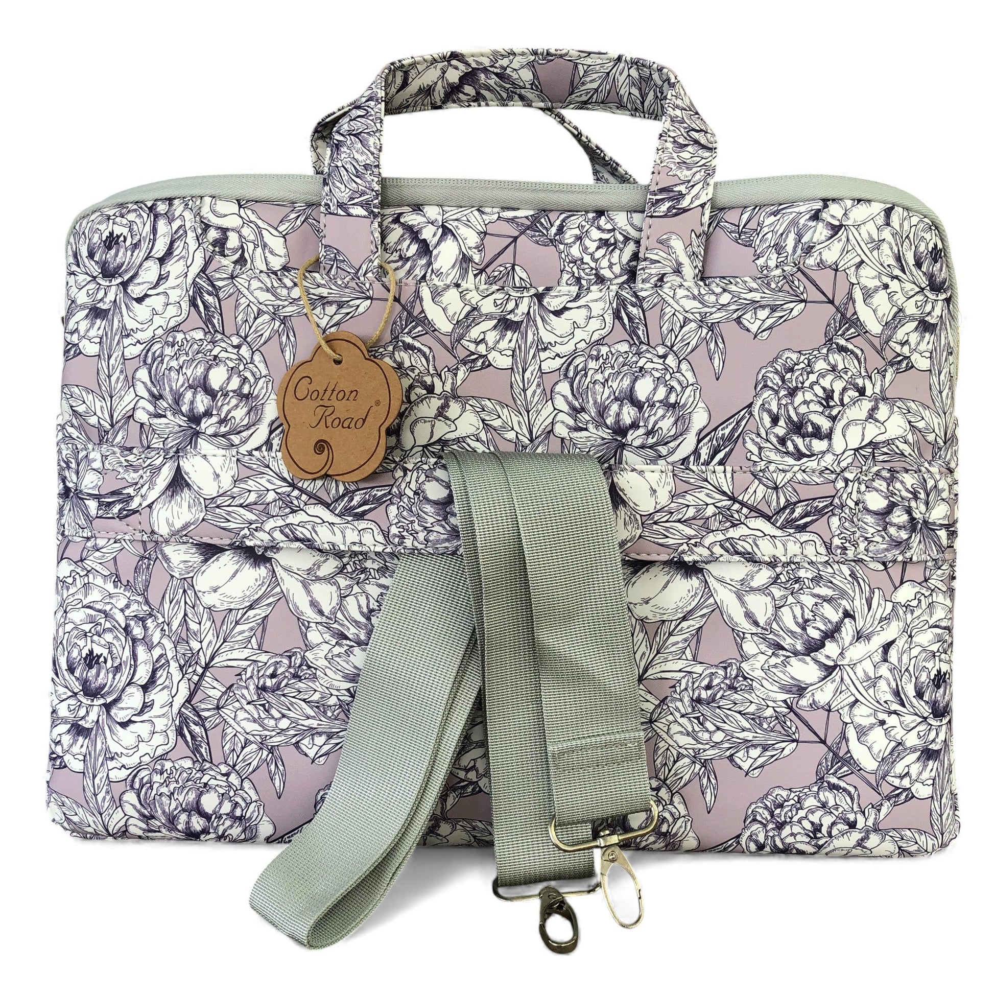 This Lilac Floral Laptop Sleeve offers the ideal balance of elegance and durability. Crafted from strong PVC with a botanical pattern, it features padded cushioning to protect your laptop from bumps and daily wear. Designed for professionals on the move, it includes multiple compartments for accessories, ergonomic handles, a removable shoulder strap and a suitcase-pass attachment—combining beauty, practicality and everyday convenience.